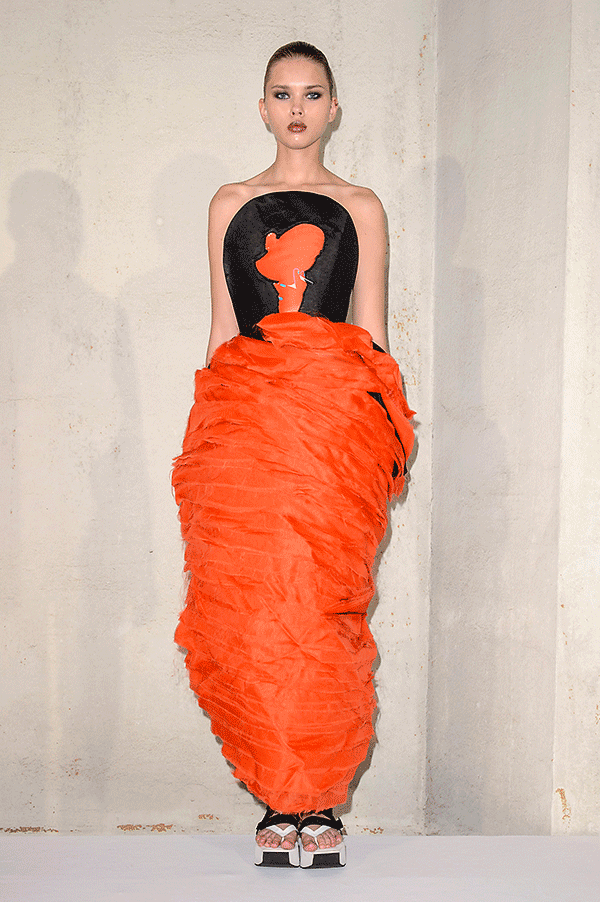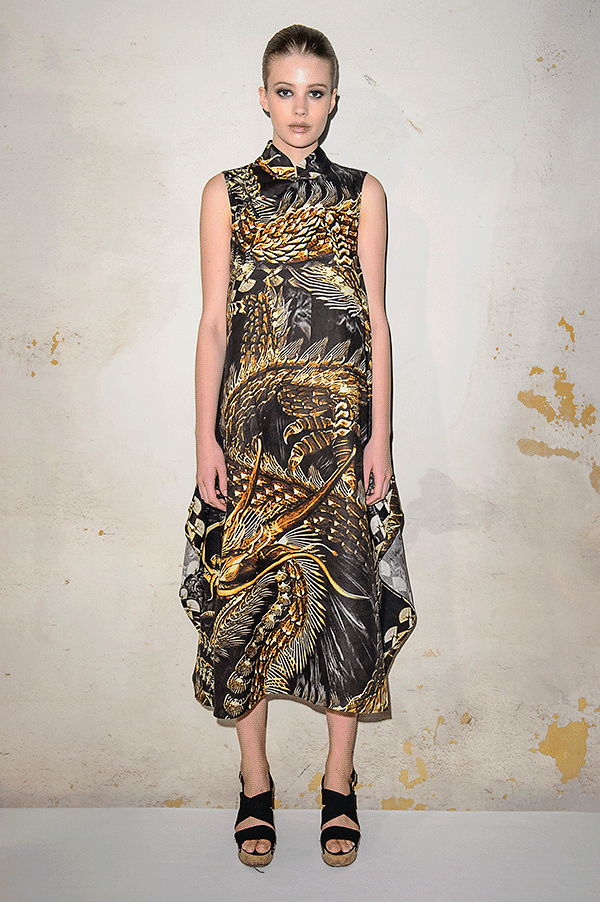 Haiping Xie谢海平本季从东方元素中汲取灵感,再踏欧洲逐尚之旅。在静态展上,带有龙图腾的大面积印花,配以斜襟与盘云扣以及经典立领设计等诸多中国元素,展现了独特的东方风韵。