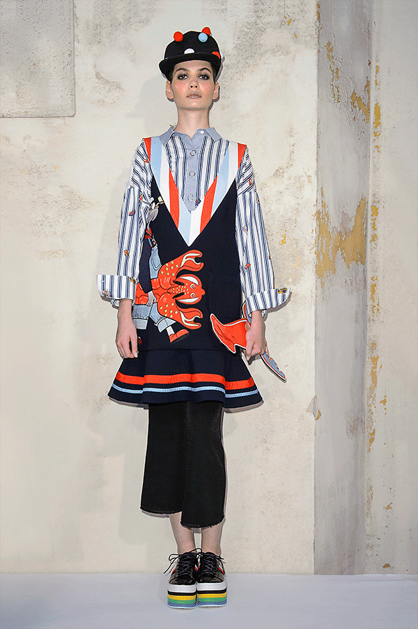 Y-VISON由独立设计师叶伟城创立,其品牌精神是“无止境,无限的可能性”。 Y-VISON 具有鲜明的时代特征,敢于打破常规,注重实穿性与个性化相结合。擅于改造面料的成分结构、运用弧形的立体裁剪、大胆的撞色拼接,冲突而和谐的材质碰撞。本次展示的服装来自的Y-VISON的“lucky”系列,立体的剪裁与利落简单的廓形,结合具有中国特色的图案:佛手、莲花、橘子等,给人新颖又有趣的感觉。