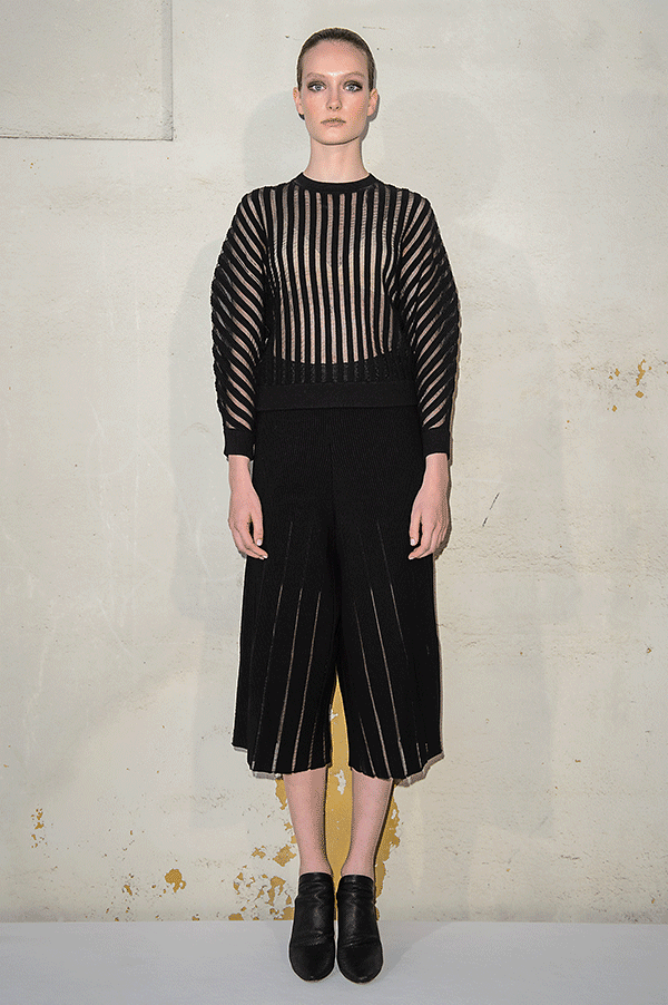 Decent(顶宜国际)2017春夏设计旨在营造时尚感的同时强调立体感、空间港、和层次感。一向平整光洁的定式,以各种各样的材料,如金属纱和透明纱跟织法进行不常规运用,创造出各种肌理效果。应用了现代科技,结合新颖设计思想,创造出独特而不可思议的织片和服装。本季通过纹理和褶皱工艺来传递女性精致生活的设计理念。