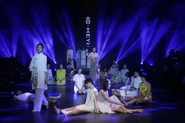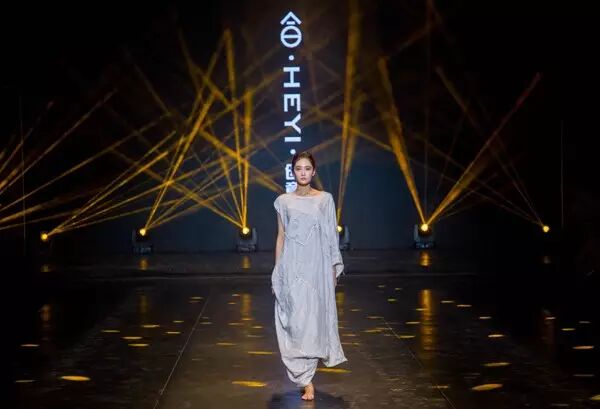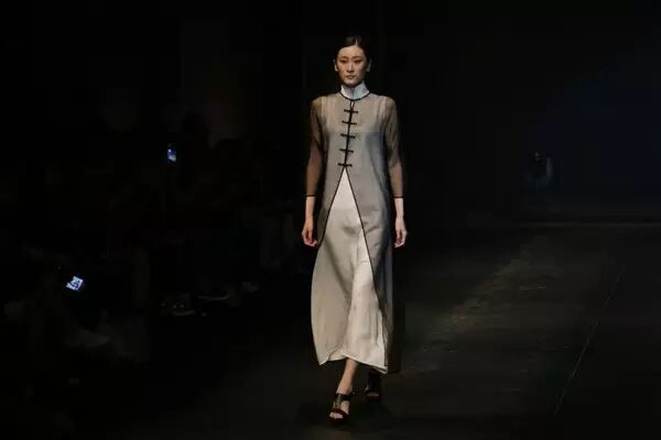 设计师品牌花禅,长长的衣襟让人感受到东方美的行云流水,古筝伴奏、轻纱飞扬,一针一线中透漏着时尚禅意。