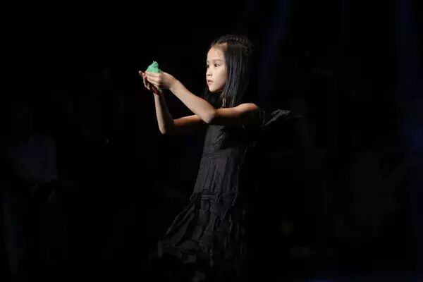 随着旋律转换,地面的无数金光坠落,一种宁静祥和的意境将美好的愿望在主题中诠释。简单的黑白色定义了该系列的主要基调,鸟类的羽翼的元素则恰到好处的寓意了人类与自然的关系。用什么样的态度对待自然和生命?当压轴出场的小童模化身天使手托小鸟祈祷时,相信在场观众已经在心底找到了答案,这也是合一创意希望用设计传递的正能量。