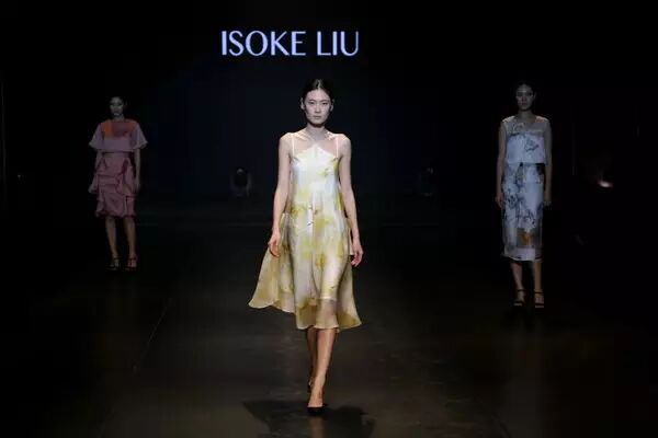 紧接着,ISOKE LIU登场,设计师刘珊珊将自己在绘画上的灵感恣意倾洒在画布上,设计的垂坠感随着衣襟飘扬带来一种浓郁的水墨情结,而别致的蝴蝶结更加增添了东方优雅。