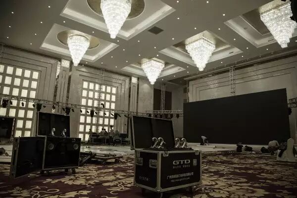 10月13日 AM 11:00 完成搭建的金色大厅,工作人员准备就绪,默契排练