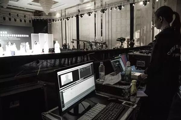 AM11:30 活动开始前的最后一次彩排,深圳市服装行业协会、柯桥区工作人员与导演、模特以及执行机构工作人员认真筹备中