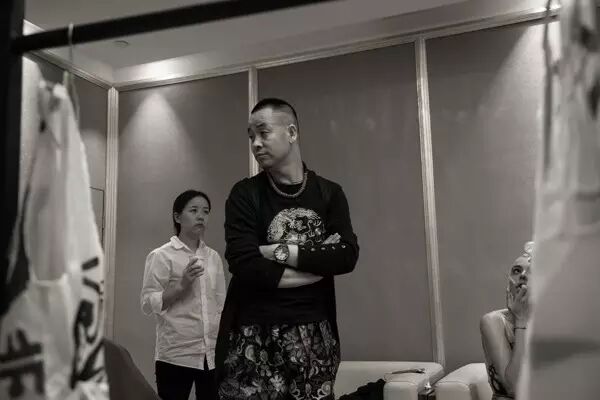 PM9:30 认真挑选模特的设计师谢海平,本次他将带来在纽约时装周精彩上演的“飞天”系列,同时一起参与联演的品牌还有邓皓、KAVON卡汶