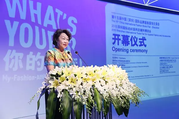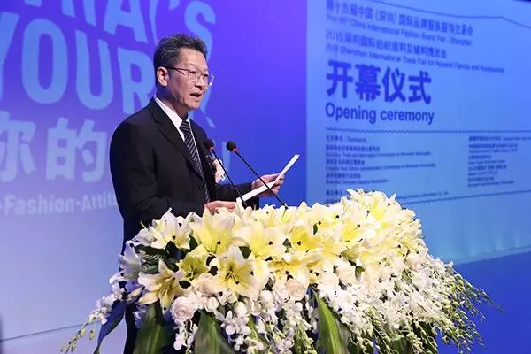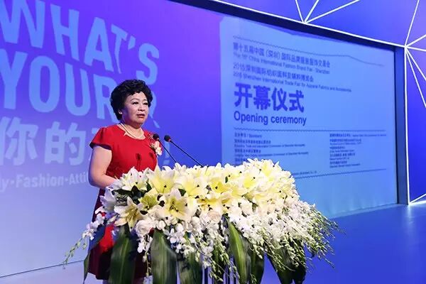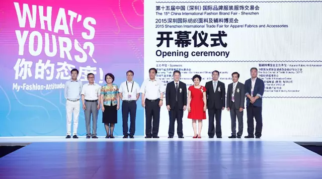 开幕式现场,中国纺织工业联合会会长王天凯、副会长孙瑞哲、张莉,中国纺织工业联合会顾问张延恺,中国国际贸易促进委员会纺织行业分会常务副会长徐迎新,中国服装协会常务副会长陈大鹏,中国服装协会顾问蒋衡杰,中国纺织信息中心主任乔艳津,中国纺织工业联合会品牌工作办公室副主任苏葆燕;深圳市副市长陈彪,深圳市总商会常务副主席蔡立,深圳市经济贸易和信息化委员会副主任高林,深圳市龙华新区管委会副主任胡晓清,深圳市社会组织管理局副局长孙景明,深圳市服装行业协会会长沈永芳,环球资源首席执行官区乃光以及来自港澳台各服装商协会代表等领导与嘉宾出席。在陈彪副市长宣布深圳服交会开幕后,领导嘉宾和现场观众一同欣赏了“时光·印记”——JINGNA晶娜开幕秀,切合本届服交会“科技引领时尚”主题的JINGNA晶娜 2015秋冬时尚发布将职场装束做出了百样风情。