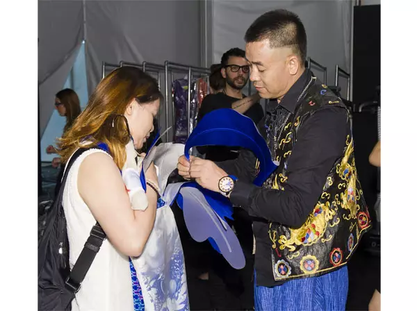 2015春夏纽约时装周后台,为发布做准备的谢海平