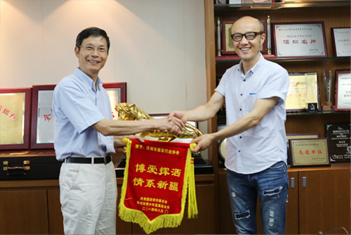 近日,由共青团深圳市委员会(以下简称“团市委”)、深圳市青少年发展基金会(以下简称“市青基会”)和深圳市服装行业协会举办的“支援新疆塔县冬衣行动表彰会议”在深圳市服装行业协会会议室举行,会上,深圳市青少年发展基金会秘书处汇报了本次赴新疆爱心活动的捐赠情况,深圳市青少年发展基金会理事长覃炳庚为本次援疆活动中作出突出贡献的深圳市服装行业协会、深圳市欧莎世家服饰有限公司、深圳市久久时尚童装有限公司、深圳市安奈儿股份有限公司、深圳市欣业源新技术有限公司等单位和企业赠予了荣誉锦旗。