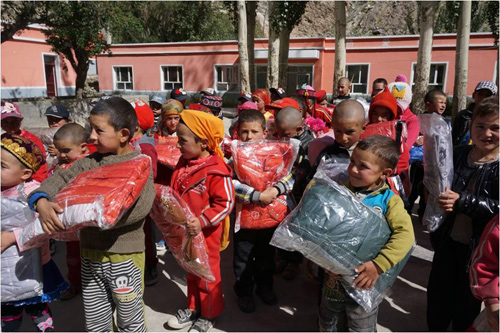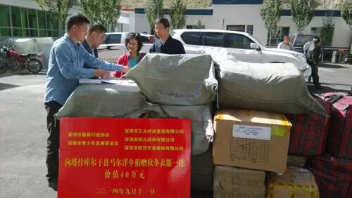 据了解,9月中旬,由共青团深圳市委员会、深圳市青少年发展基金会、深圳市服装行业协会联合发起了援助喀什青少年“篮绳计划”和“冬衣行动”,通过广泛动员爱心企业,将募集到的1000件御寒冬衣、100个篮球和1000条跳绳等价值40多万的物资赠予喀什地区的青少年,并分别在新疆喀什对口支援新疆工作前方指挥部塔什库尔干塔吉克自治县(以下简称“塔县”)马尔洋乡人民政府和马尔洋乡小学举行了捐赠仪式。深圳市久久时尚童装有限公司、深圳安奈儿股份有限公司、深圳市欧莎世家服饰有限公司、深圳市欣业源新技术有限公司、深圳中兴通讯股份有限公司等一大批深圳爱心企业积极响应了本次活动。