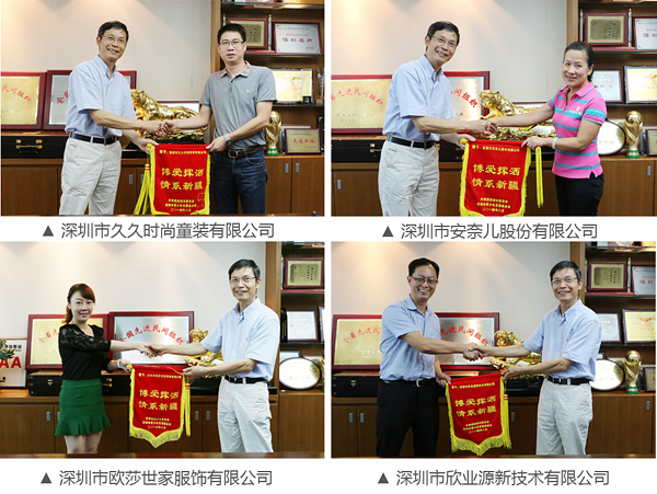 ▲ 深圳市青少年发展基金会理事长覃炳庚授予深圳市服装行业协会荣誉锦旗