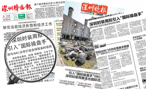 作为“国际操盘手”,IMG拥有、制作及代理全球21项最顶级的时装盛事,包括纽约、米兰、伦敦、柏林、东京、悉尼等18个时装周。合作中,深圳市服装行业协会将与IMG共同成立运营公司,承办深圳时装周,参与总体方案的制定和实施,并根据总体方案进行市场化、商业化运作等。