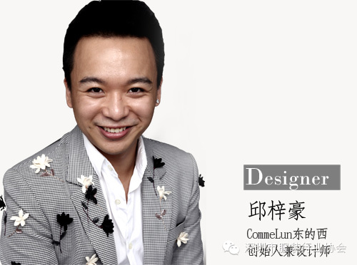 邱梓豪,“CommeLun东的西”创始人兼设计师。19岁就读于BRIGHTONUNIVERSITY,学习双科服装设计与工商管理专业。邱梓豪始终希望把生活的实用主义穿着与积极态度完美糅合,让时尚美学去诠释时尚生活。他注重服装设计的原创精神,用激发好心情的灵感演绎出梓豪式独特的玩味美学设计。