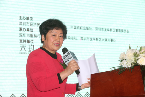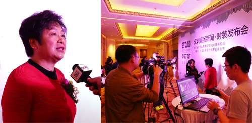 深圳服装行业协会会长沈永芳在新闻发布会上作展会新闻发布