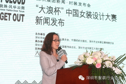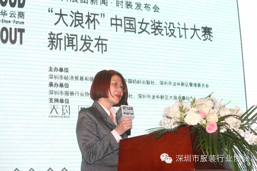 深圳市龙华大浪时尚创意城服务中心主任王艳霞在大浪杯新闻发布会上致辞