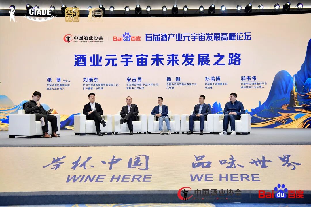 在论坛对话环节,四川五粮液新零售管理有限公司执行董事、总经理刘晓东,华润雪花啤酒(中国)有限公司营销中心总经理宋占民,会稽山绍兴酒股份有限公司总经理杨刚,张裕线上销售事业部总经理孙鸿博,百度MEG销售业务平台食品饮料行业负责人郭韦伟就消费时代下,如何探寻酒业元宇宙未来发展之路,推动白酒行业高质量发展有关问题进行了对话交流。