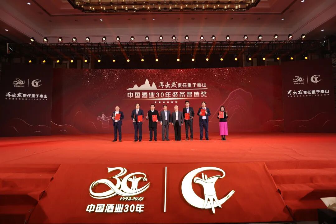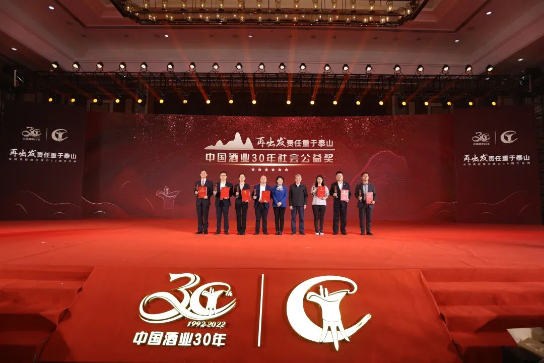 在3月26日举行的“再出发,责任重于泰山——中国酒业协会成立三十周年庆典”上,对在酒业科技成果做出重大贡献和突出成绩的酿酒企业授予“中国酒业30年科技成果奖”荣誉称号;对热心酒业社会公益、积极倡导理性饮酒的酿酒企业授予“中国酒业30年社会公益奖”荣誉称号;对积极创新传统文化、大力弘扬中国酒文化的酿酒企业授予“中国酒业30年文化双创奖”荣誉称号;对致力酒类市场建设、推动酒类消费的酒类经销商授予“中国酒业30年市场开拓奖”荣誉称号;对助力酒业酿造机械化、数智化转型升级的优秀科教装备企业授予“中国酒业30年装备智造奖”荣誉称号;对扩大酒业声量、