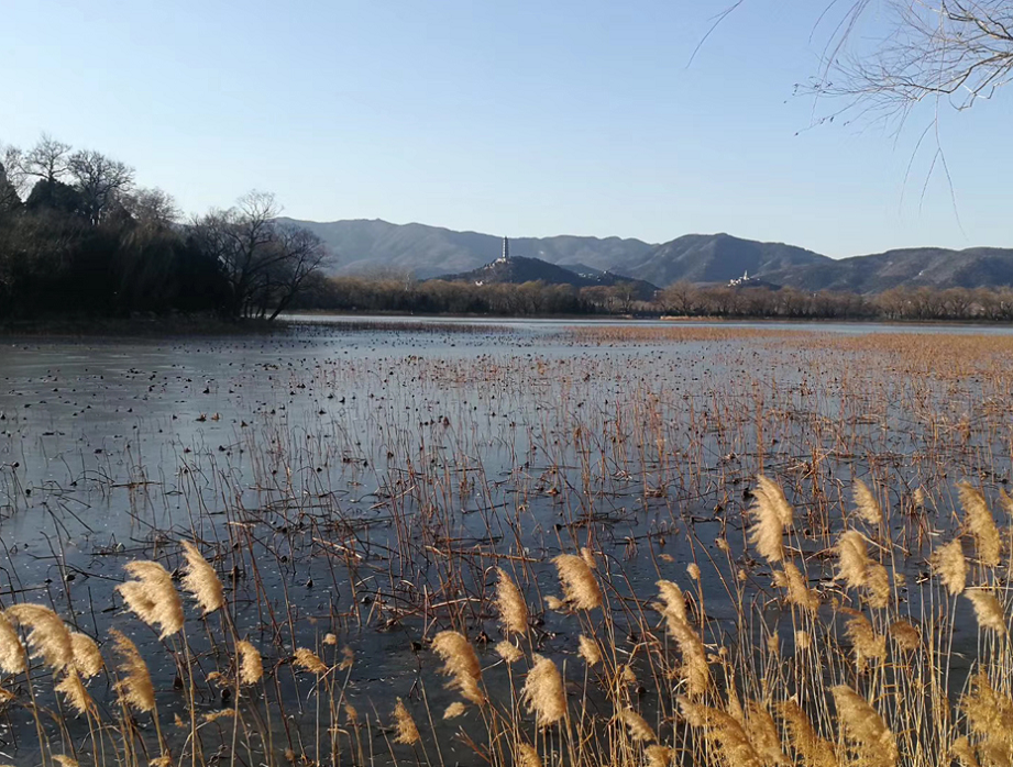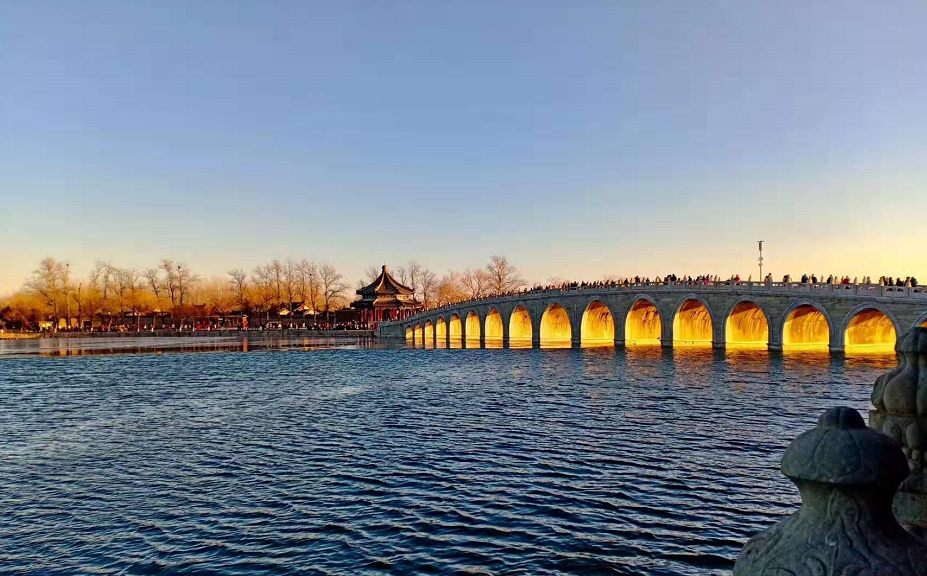 初冬的颐和园清空万里、静谧宜人。颐和园西堤东侧是宽广的昆明湖,西侧是颐和园生物保护区,视野非常开阔。下午2时30分,正是太阳光线比较强烈的时候,也是一天之中最暖和的时候。冬日的阳光明媚,给颐和园抹上了淡淡的金辉,阳光洒在昆明湖面上,湖上泛起点点金光,与远处的佛香阁建筑群、深邃的蓝天背景,相互映衬,格外美丽。大家三五成群,边交流工作生活心得,边尽情感受“湖光山色两相和”的美景,在蜿蜒小路、林间栈道别样的景致中走完了6公里。