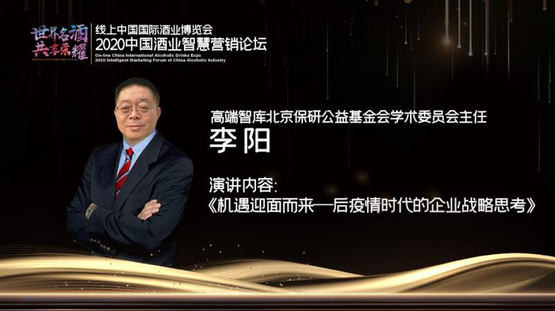 2020中国酒业智慧营销论坛特别邀请到来自京东、百度、华为、保研公益基金会学术委员会的专家为中国酒业健康发展贡献智慧。如何在疫情趋势下保持清醒认知,以及在疫情背景下全球格局外部环境压力和内部深化改革期间对消费结构有清醒的认识?高端智库北京保研公益基金会学术委员会主任、北京和君咨询酒水事业部高级顾问李阳在《机遇迎面而来——后疫情时代的企业战略思考》时指出,酒企战略应该基于形势改变进行调整和重构,后疫情时代对企业来说是一个下蹲动作,机会蕴藏于危机,希望酒企能抓住迎面而来的机遇。