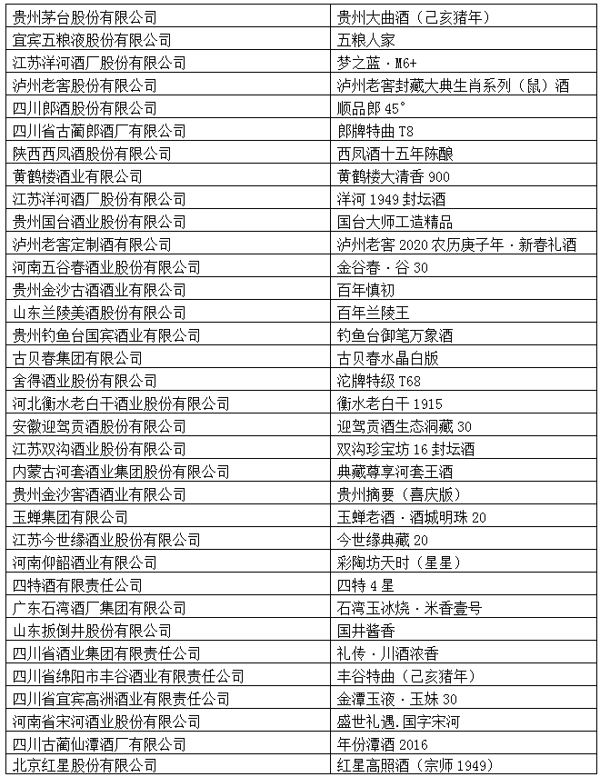2019年度“青酌奖”酒类新品---白酒获奖名录