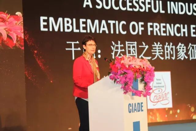法国国家干邑行业管理局局长莱帕赫(Ms. Lepage)以《干邑:法国之美的象征性产业》为主题做了主旨发言。她从以下几个方面解读了干邑作为法国地标性产品的关键要素:一,传承。干邑是一种传达着浓郁法式生活风情的产品,作为产业的一份子,她始终认为尊重伟大风土的宝贵遗产和传承数世纪之久的精妙技术是每一个继承者的责任。而干邑的从业者们也很好的继承、保持并传承这一共享的财富;二,充分尊重与利用地理优势。在干邑的发展过程中,整个产业充分利用风土条件,专业技术和丰富经验来生产高质量的干邑产品。并成就了世界最大的葡萄蒸馏酒产地:75000公顷,这其中包括大香槟区、小香槟区、边缘林区、优质林区、良质林区、普通林区。干邑作为最久的法国地理标志保护产品之一,一直努力于标准化体系建设,包括近年来新的干邑产品规格书诞生,以及成为首个在中国国家质检总局注册的地理标志保护产品;三,干邑有着独特的产品消费体验 。干邑的消费方式很大程度上取决于消费地,比如在中国人们喜欢用干邑佐餐而在美国干邑鸡尾酒则更加流行。不同的产品质量也决定了干邑的消费方式,比如VS和VSOP干邑经常用作鸡尾酒和饮料,而陈年较久的干邑则通常单独饮用。与此同时,干邑还以享乐主义的消费生活方式,不断吸引各个时代的消费者 。干邑传达的是优雅,卓越和令人愉快的现代生活方式,这是深受大众认同的。无论他们的文化背景和年龄差异如何,干邑的多样性使得每个人都能欣赏到它出色的品质并且去分享其独特又丰富的体验,同时也能保持每个人不同的感受。干邑复杂的香气和多样化的消费方式令干邑产品与香水非常相似,每个消费者都能够找到适合自己的那一款。
