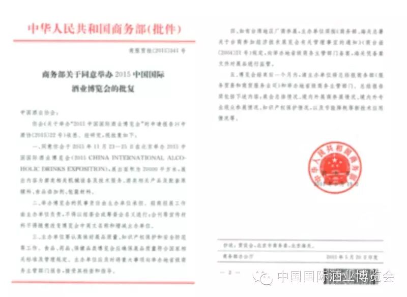 日前,国家商务部批准了中国酒业协会主办2015中国国际酒业博览会·国际酒类技术装备精品展的申请,展出内容为酒类相关机械设备及技术服务、酒类相关产品及配套原辅料、食品添加剂、包装材料等。