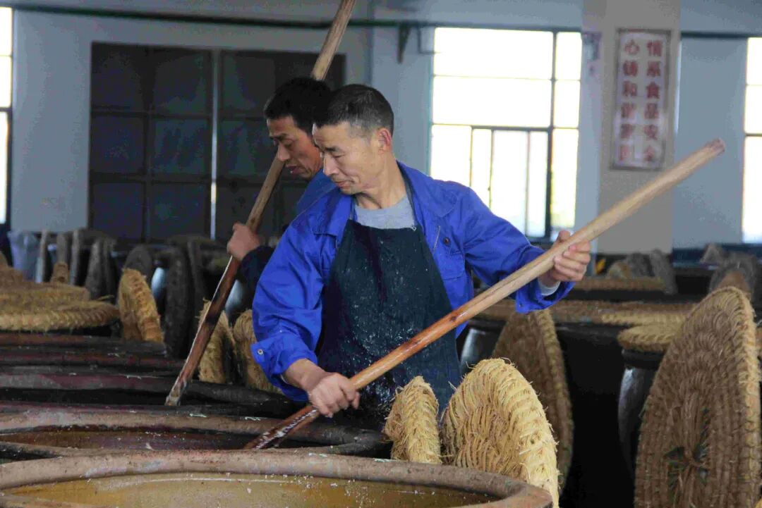 在酿酒一厂,冬酿深处酵正欢,酿酒师傅们忙碌着,把控着发酵的节奏