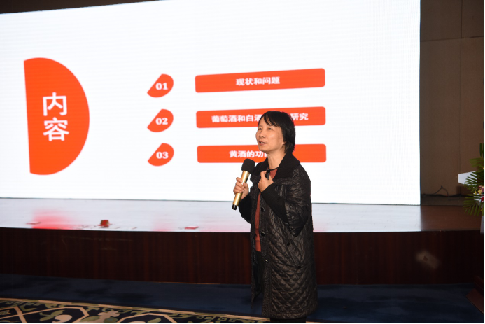 中国酿酒大师邹慧君就“黄酒功能性功能表达”主题发表演讲。邹大师从黄酒酿造过程中丰富的原料和丰富的微生物赋予其多种功能性物质等方面,对黄酒功能性功能做了深度解读。
