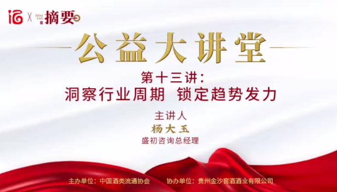 近日,由中国酒类流通协会主办,贵州金沙窖酒酒业有限公司协办的“摘要·公益大讲堂”第十四讲《洞察行业周期 锁定趋势发力》,在云酒、酒业家、微酒三家直播平台开讲。