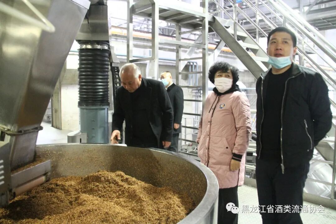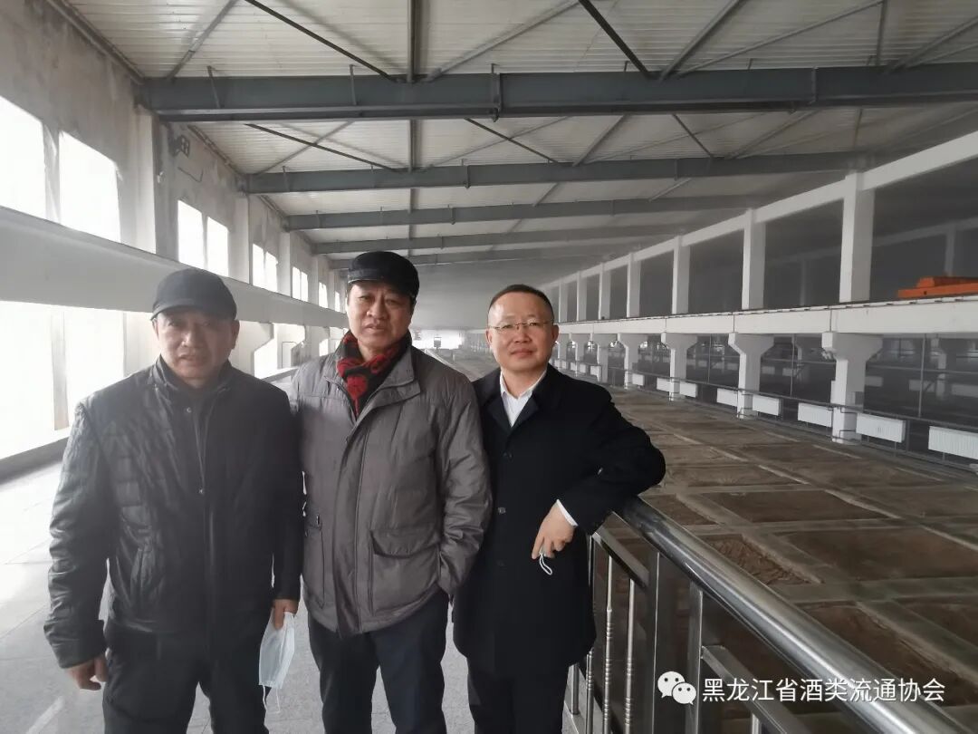 黑龙江省酒类流通协会会长王永桓与双城区招商局局长魏永权、双城区网络经济发展局副局长张庆策共同参观拥有1800口窖池的单体生产车间。