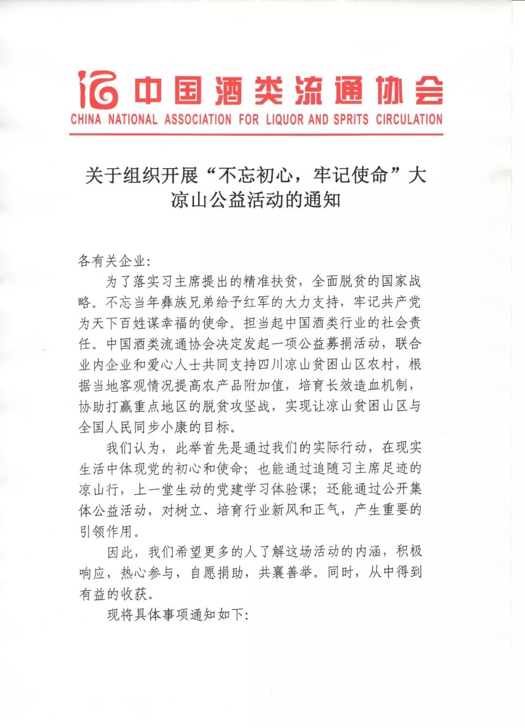 关于组织开展“不忘初心,牢记使命”大凉山公益活动的通知