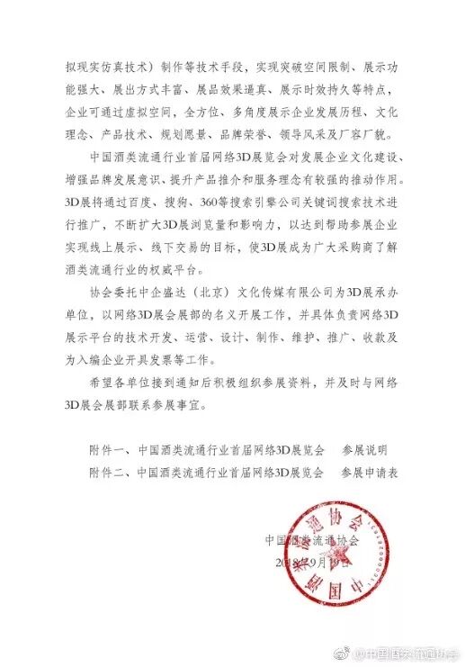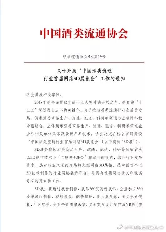 关于开展“中国酒类流通行业首届网络3D展览会”工作的通知