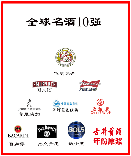 在全球排名前10的酒类产品中,还有另外3个中国产品入围,分别为洋河蓝色经典、五粮液普五和古井年份原浆。