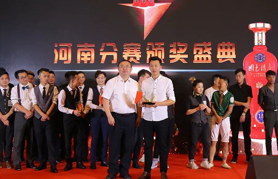 河南省酒业协会会长熊玉亮为花式冠军颁奖