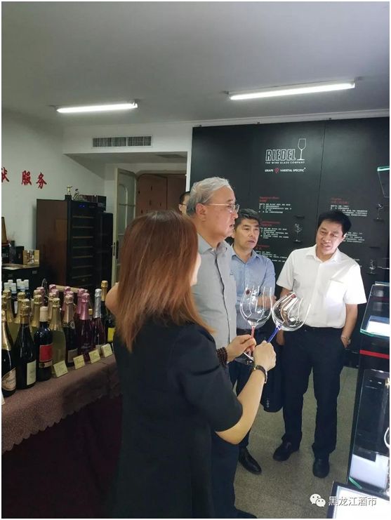 2018年5月31日,中国酒类流通协会王新国会长、秦书尧秘书长、副秘书长赵禹一行来到冰城哈尔滨,在黑龙江省酒类流通协会会长王永桓的陪同下考察了黑龙江省的“国家级放心酒示范店”。本次考察对象分别是哈尔滨往事商贸公司、哈尔滨小酒喔酒类直供连锁、黑龙江天宏酒业公司。