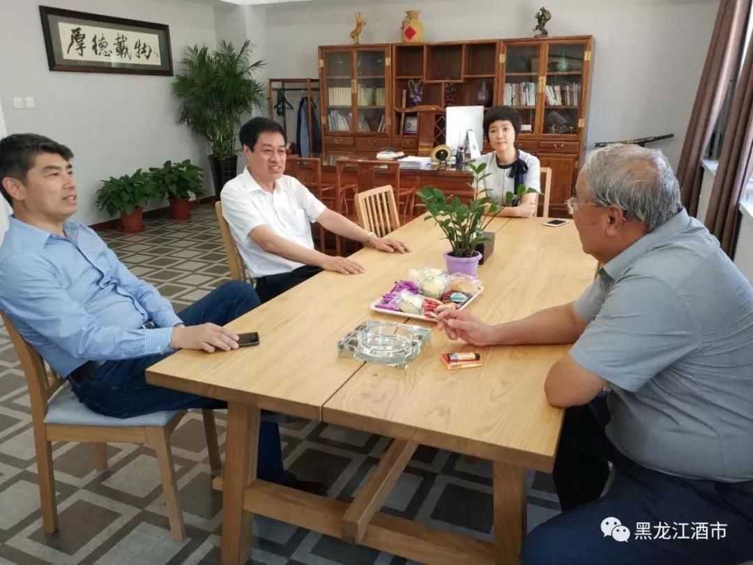 王新国会长、秦书尧秘书长在哈尔滨往事商贸公司和王笑卓总经理愉快沟通