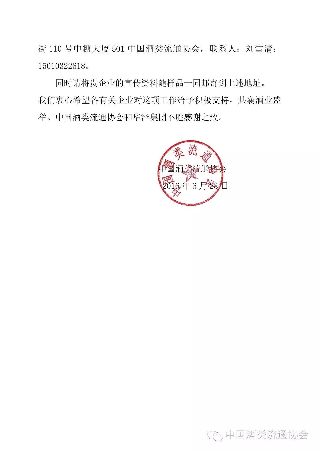 我们衷心希望各有关企业对这项工作给予积极支持,共襄酒业盛举。中国酒类流通协会和华泽集团不胜感谢之致。