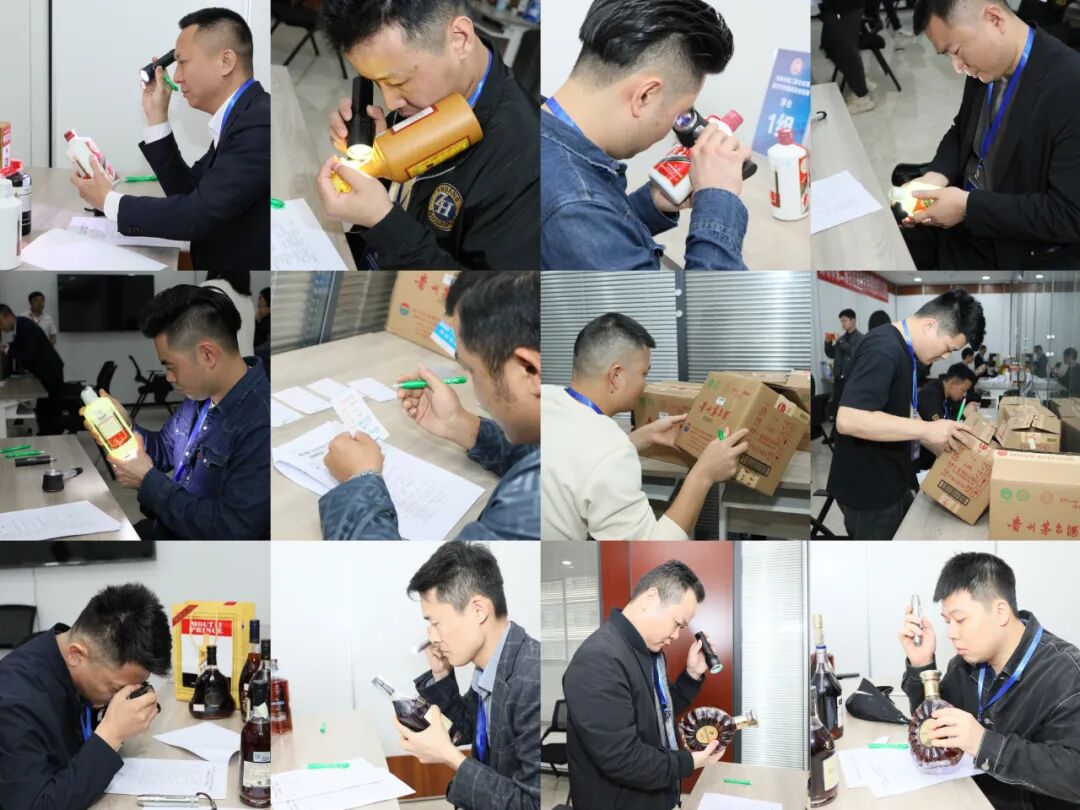 本次大赛以“竞速实战准确优先”方式进行。针对贵州茅台酒品牌,采用不同年代的酒样(有真有假)、外箱、装箱单三个维度,复现瓶身“拔头”、低度换标、真瓶假头及其它真伪印记等假酒特征,对所有参加选拔的学员进行真伪鉴定鉴别技能考核。