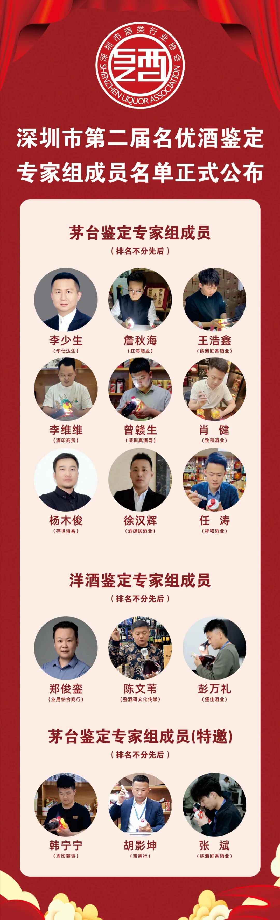 附:深圳市第二届名优酒鉴定专家组成员名单: