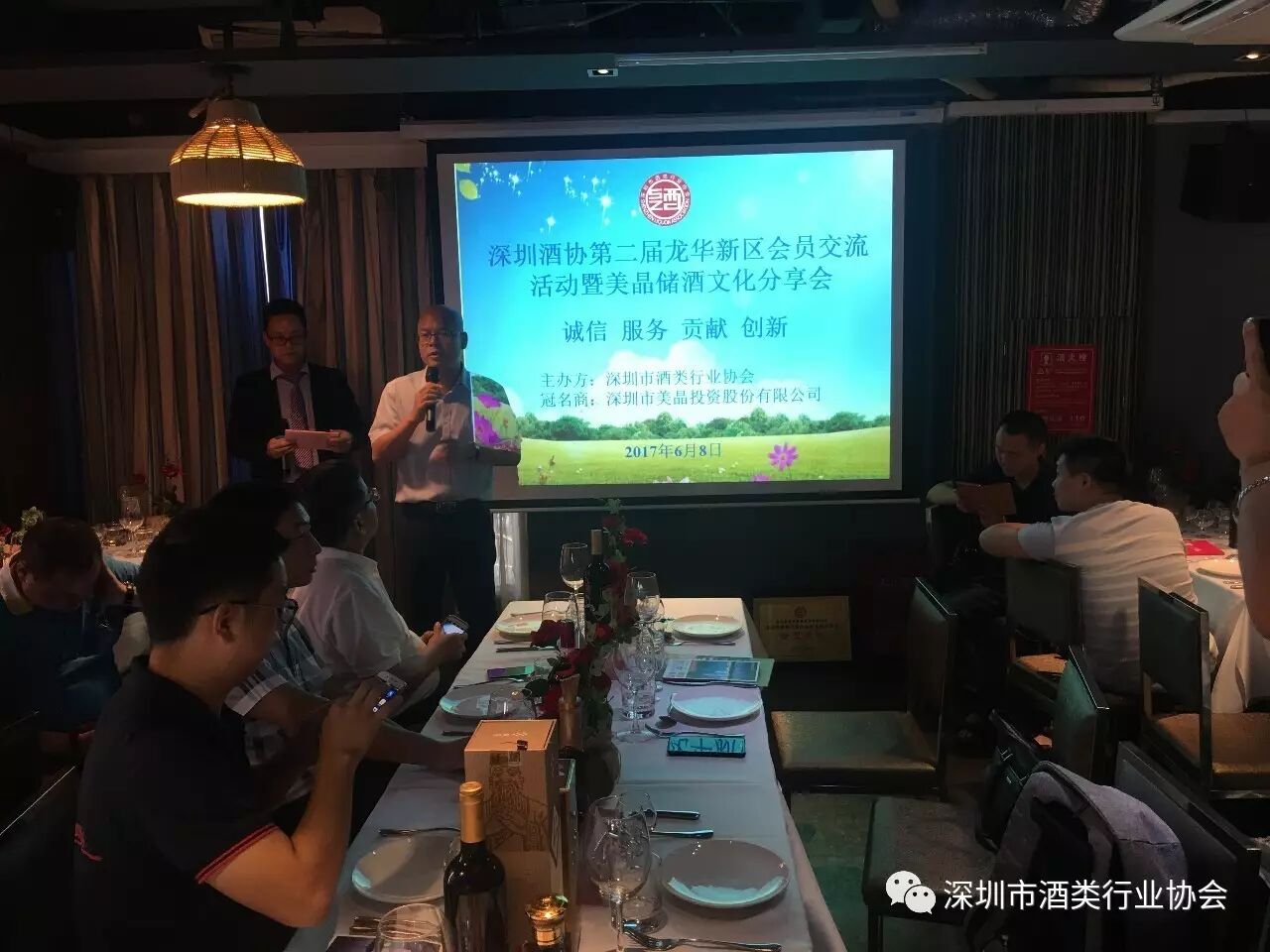 2017年6月8日,“深圳酒协龙华新区第二届会员交流活动”在龙华锦绣江南米特时尚西餐厅隆重举行,此次分区活动由深圳酒协会员单位-深圳市美晶投资股份有限公司冠名赞助,深圳酒协副会长、龙华新区会长何国平先生亲临会场,并发表重要讲话, 指出:“协会应该以会员的活动服务为目标,尽可能的方便为会员服务,充分尊重会员代表的意见,根据本行业发展水平和会员代表的实际需求设计工作机构,工作机构应是知识型、专业化、能工作,真正为会员服务的机构”