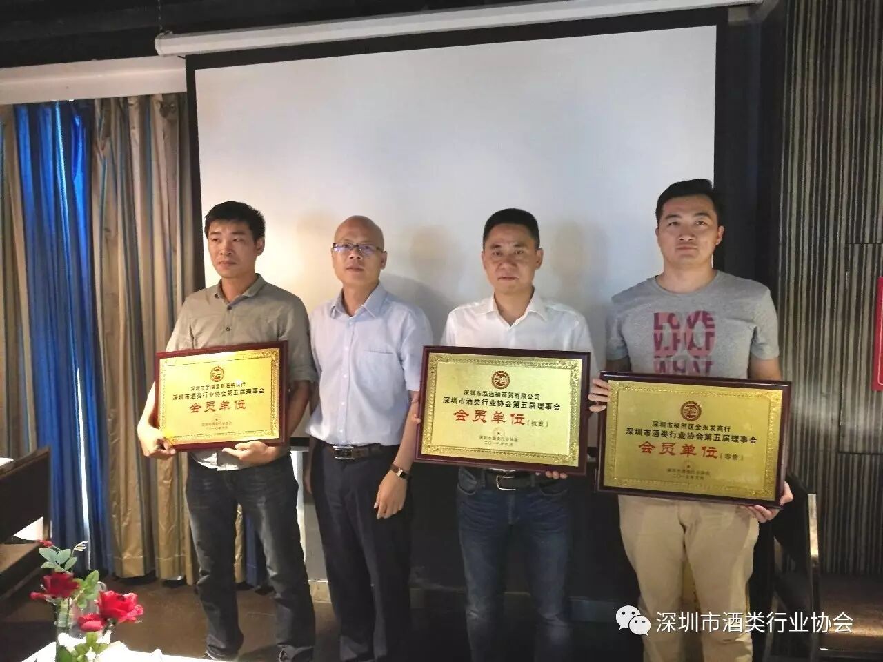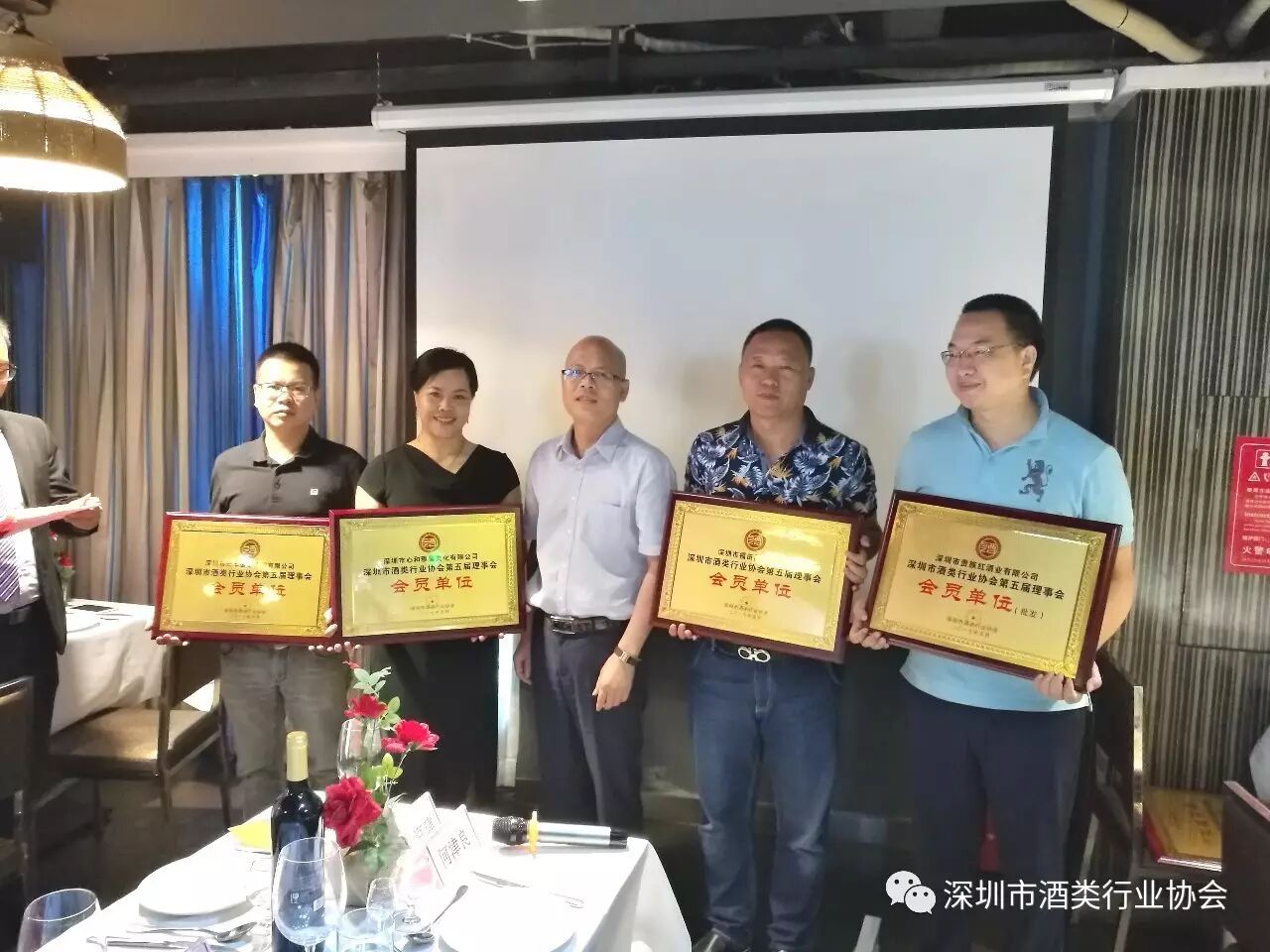 4、深圳酒协副会长、龙华新区会长何国平先生为新入会会员授牌,新入会的会员单位单位名称如下: