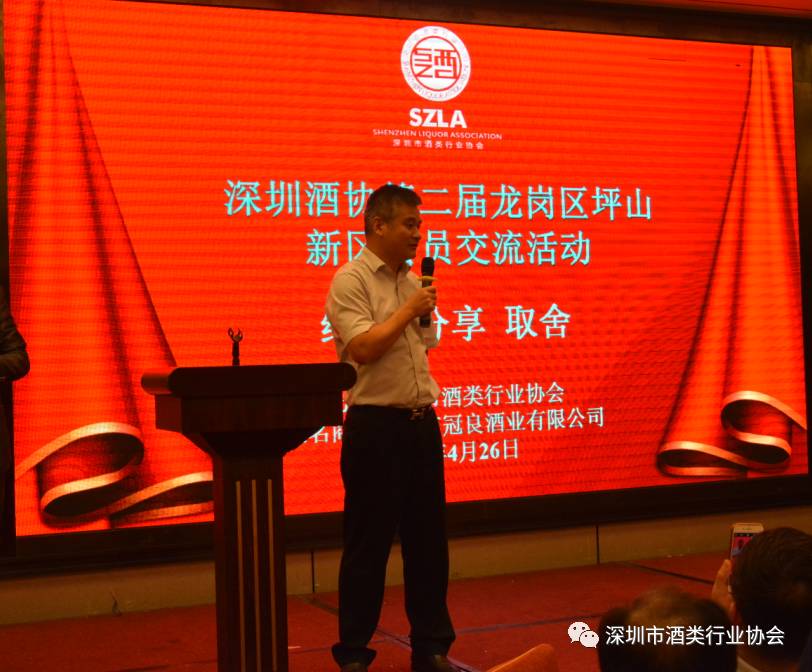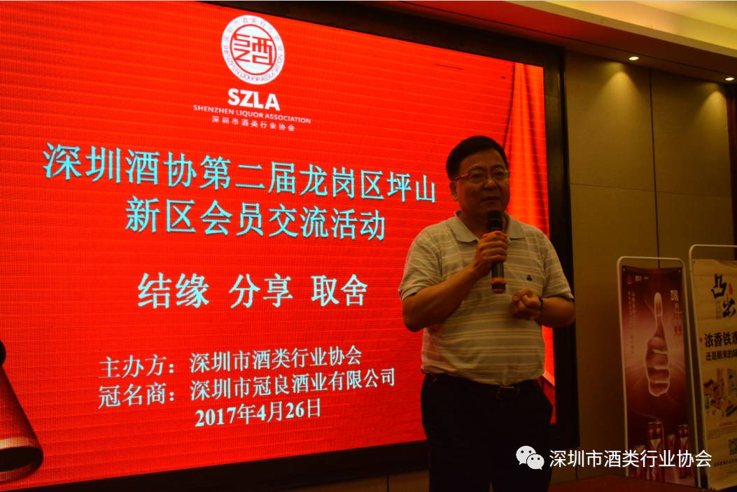 深圳酒协龙岗区、坪山新区会长王新华在会员交流会上致辞