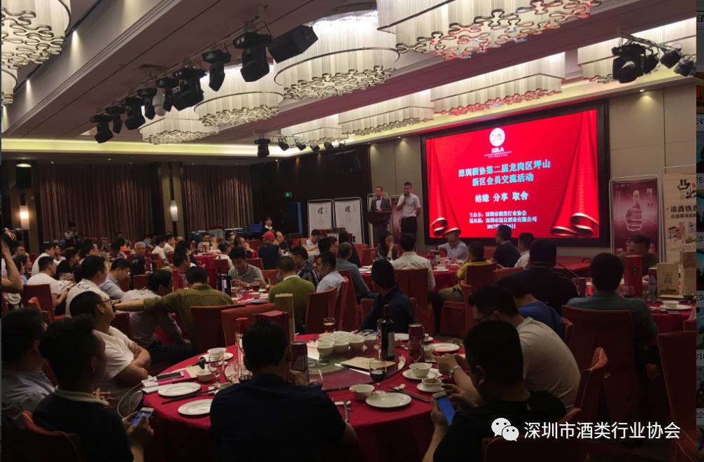 2017年4月26日,“深圳酒协第二届龙岗区、坪山新区会员交流活动”在君逸国际酒店万寿宫隆重举行,此次交流会共有84家酒企,110人参会,以“结缘 分享 取舍”为主题,分区会长王新华亲临会场,并发表重要讲话,邀请资深实战营销专家、中国十大策划专家丁敬波老师与五位不同营销渠道的企业代表现场探讨营销之道,秘书处对协会新增服务与《食品安全法》作了简要介绍,呼吁广大会员诚信、守法经营,此次会员交流活动由深圳市冠良酒业有限公司冠名赞助敬界洞藏洞酿白酒、深圳市华腾酒业有限公司赞助智利珍藏级哈梦妮红葡萄酒、深圳市龙岗区正兴达源商行赞助法国原装进口伯菲三牌名庄酒、深圳前海凸出茶叶股份有限公司赞助大红袍茶叶、深圳市佰易贸易有限公司赞助红果宝消汁饮料。