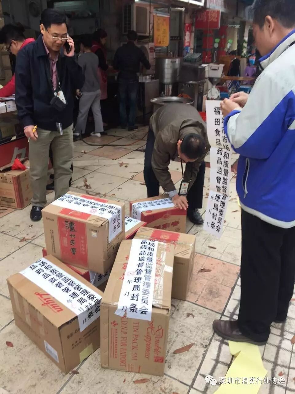 2017年1月10日,深圳市市场稽查局食品稽查处联合食品流通处开展食品市场专项执法行动,行动中检查了位于南山区沙河街道沙河街的深圳市南山区新品尚商店,当事人未经许可从事食品经营活动,现场查获:涉嫌假冒茅台、五粮液等89瓶,无中文标签系列洋酒222瓶,涉案货值超过50万元,执法人员依法对涉嫌违法的酒类进行暂扣,对当事人的经营场所进行查封。该店在LED显示屏上打有“本商行为深圳市酒类行业协会单位会员”的字样,经协会秘书处核实,此店至2014年年底已自动退会,依然假冒协会会员进行宣传,此行为已严重伤害了协会的声誉。深圳酒协将对该商行的行为保留追究法律责任的权利。