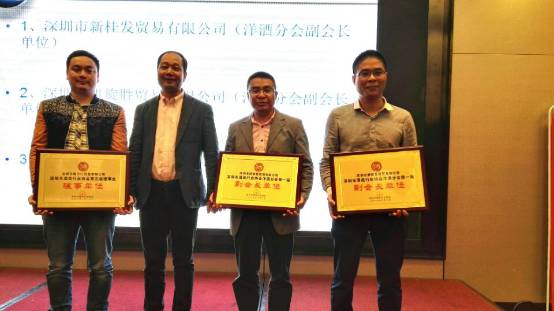 深圳酒协谢宝会长为新进的酒协理事单位及洋酒分会副会长单位授牌