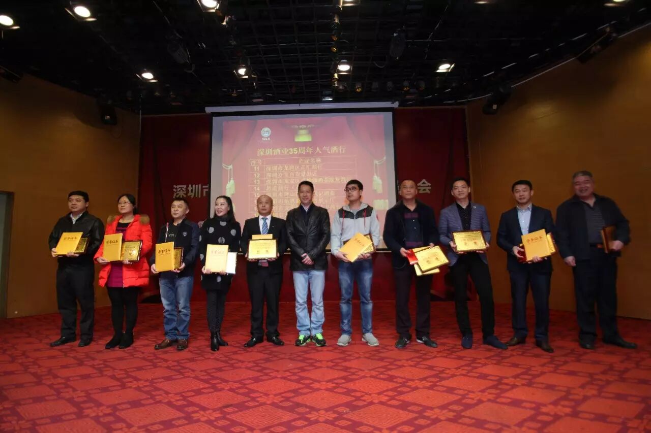 深圳市酒类行业协会联合一点到平台共同发起了深圳35周年十佳人气酒行及消费者最喜爱的酒类品牌评选活动,在会员大会上对获奖的酒行及品牌进行了颁奖。