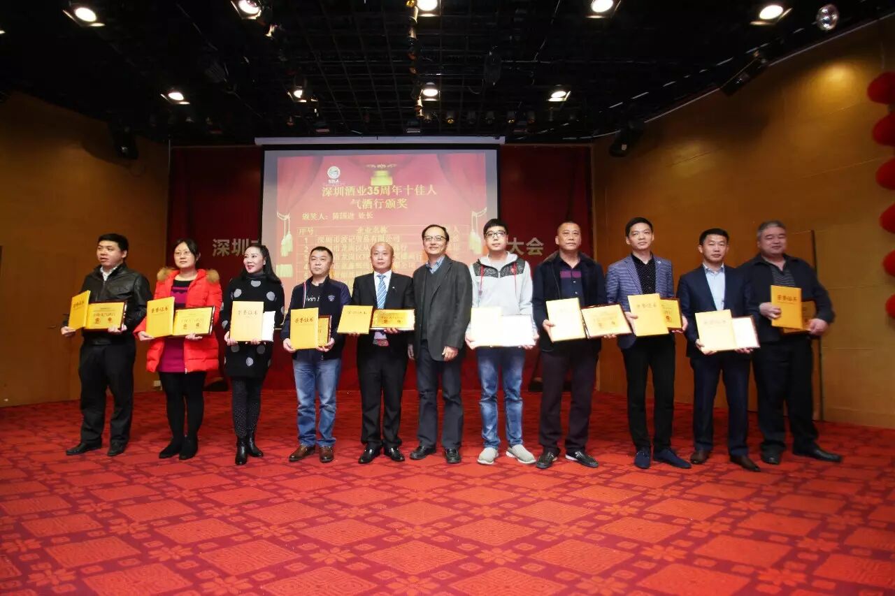 协会副会长、一点到平台董事长谢春填为深圳市35周年十佳人气酒行颁奖