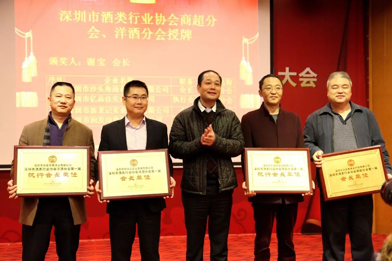 深圳酒类行业协会商超分会、洋酒分会正式成立,深圳市沙头角商业外贸有限公司为商超分会会长单位、深圳市亿品佳实业有限公司为商超分会执行会长单位、深圳市新龙记实业发展有限公司为洋酒分会会长单位、深圳市润发印象酒业有限公司为洋酒分会执行会长单位。