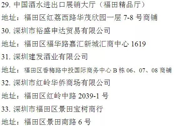 如今酒类市场上的品种繁多,让人眼花缭乱,真伪难辨。为进一步规范酒类市场经营秩序,营造一个守法、诚信、自律、安全的市场环境,给消费者塑造一个购买“放心酒”的平台,深圳市酒类行业协会根据国务院食安办《关于进一步加强酒类质量安全工作的通知》,开展“诚信经营酒类示范单位(店)”建设,自2013年3月份创建以来,得到了政府相关部门、新闻媒体、企业及消费者的一致肯定和认可,目前诚信经营示范单位已达到180余家,现将深圳“诚信经营酒类示范单位(店)”福田区公告如下: