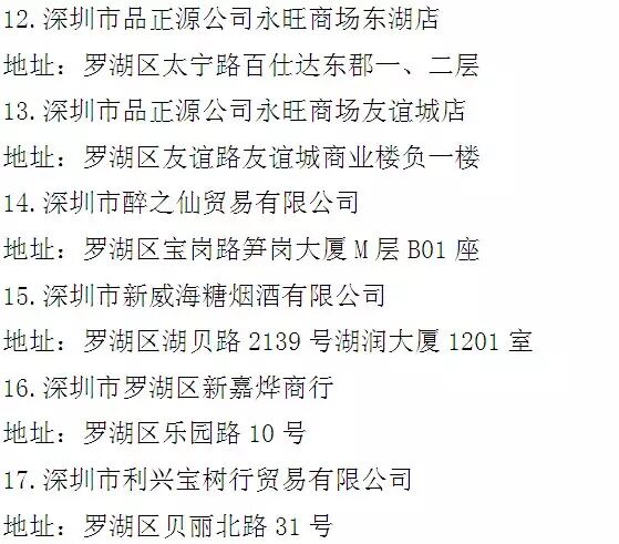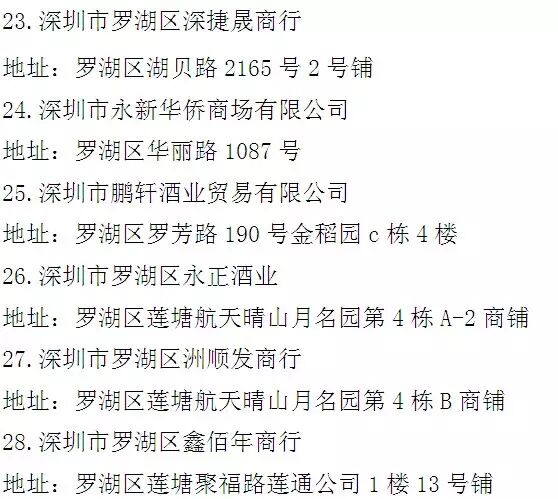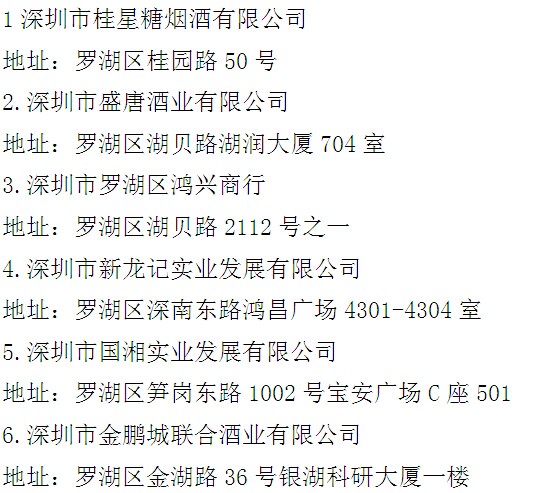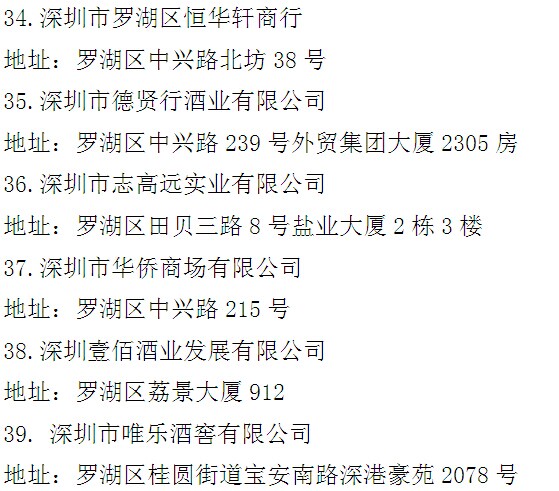 如今酒类市场上的品种繁多,让人眼花缭乱,真伪难辨。为进一步规范酒类市场经营秩序,营造一个守法、诚信、自律、安全的市场环境,给消费者塑造一个购买“放心酒”的平台,深圳市酒类行业协会根据国务院食安办《关于进一步加强酒类质量安全工作的通知》,开展“诚信经营酒类示范单位(店)”建设,自2013年3月份创建以来,得到了政府相关部门、新闻媒体、企业及消费者的一致肯定和认可,目前诚信经营示范单位已达到180余家,现将深圳“诚信经营酒类示范单位(店)”罗湖区公告如下:
