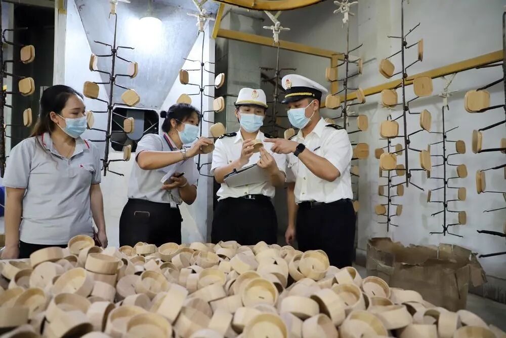广州海关所属河源海关为新注册竹制品生产企业提供防虫技术指导(关悦摄)